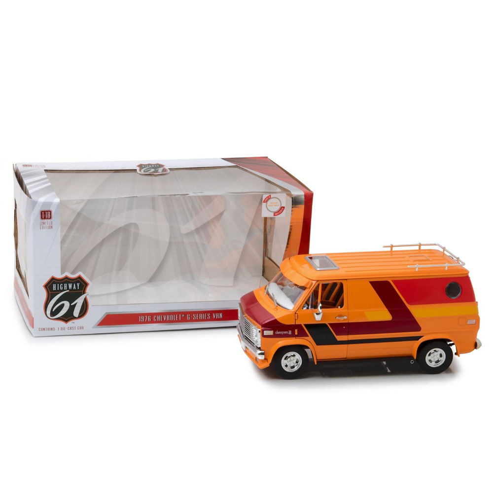 Published October 16, 2018. Size: 1000 × 1000 in Highway 61 18012 1976 Chevrolet G10 G Series Van 1:18 with Custom Graphics Orange