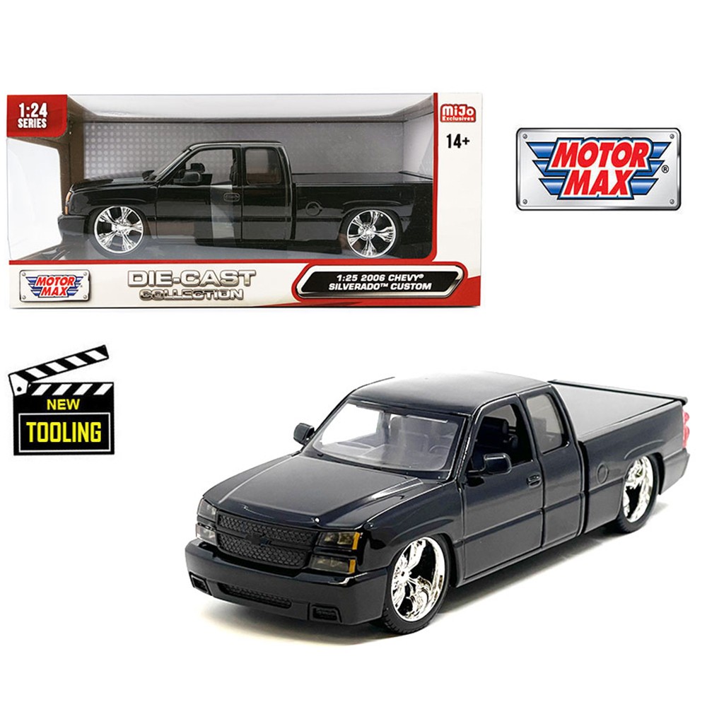 Motormax 79039 2006 Chevy Silverado Extended Cab Custom 1:25 Black
