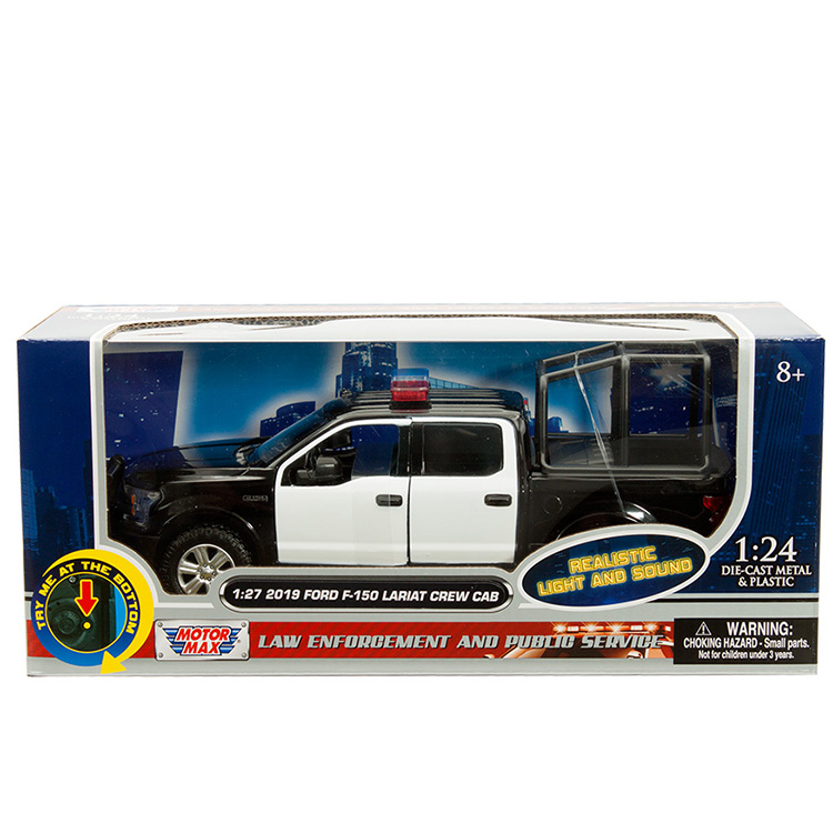 Motormax 79543 2019 Ford F-150 Lariat Crew Cab 1:27 with Stand Cage & Light and Sound Black / White