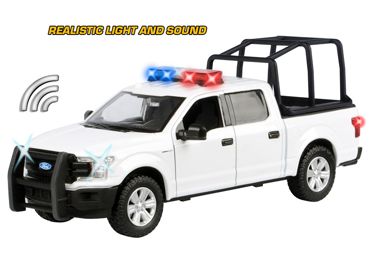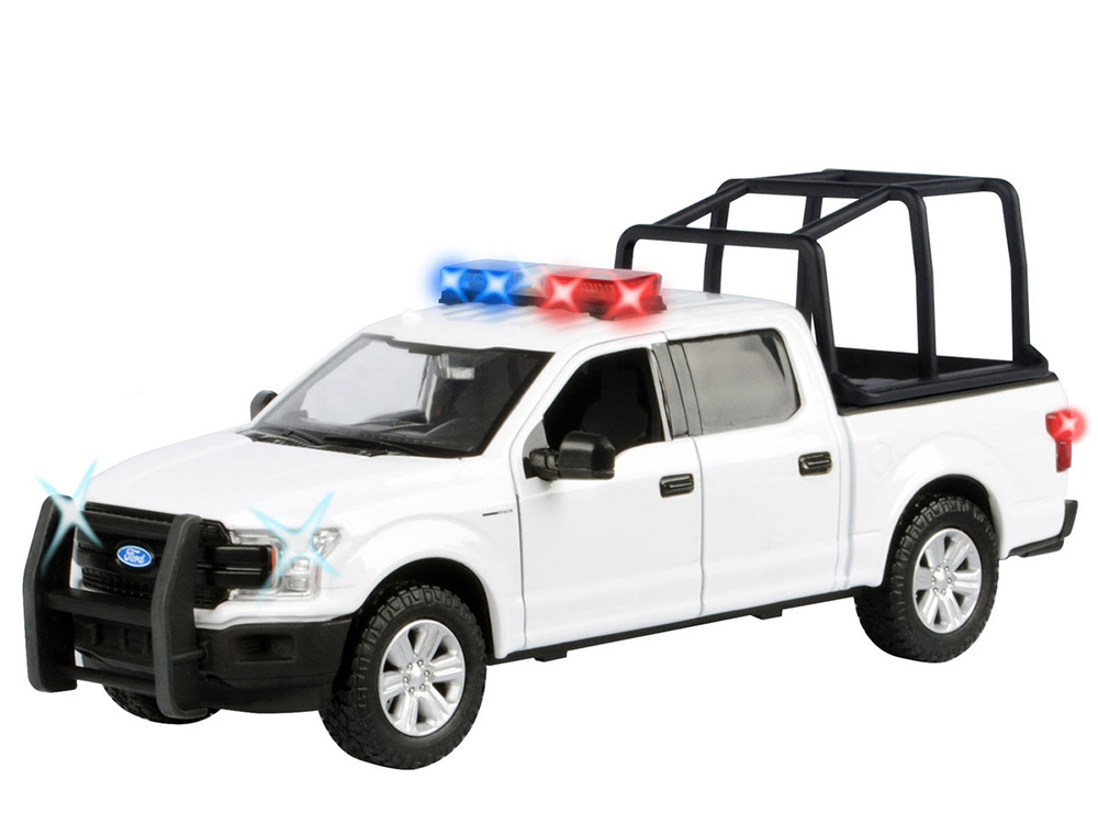 Motormax 79543 2019 Ford F-150 Lariat Crew Cab 1:27 with Stand Cage & Light and Sound White
