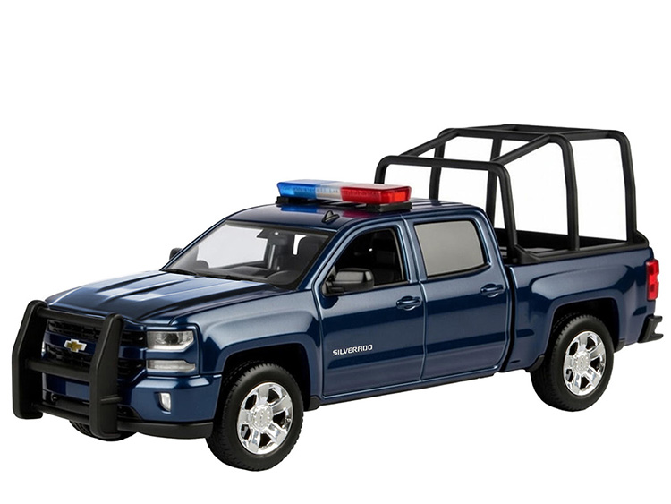 Motormax 79547 2017 Chevrolet Silverado 1500 LT Z71 Crew Cab 1:27 with Stand Cage & Light and Sound Blue