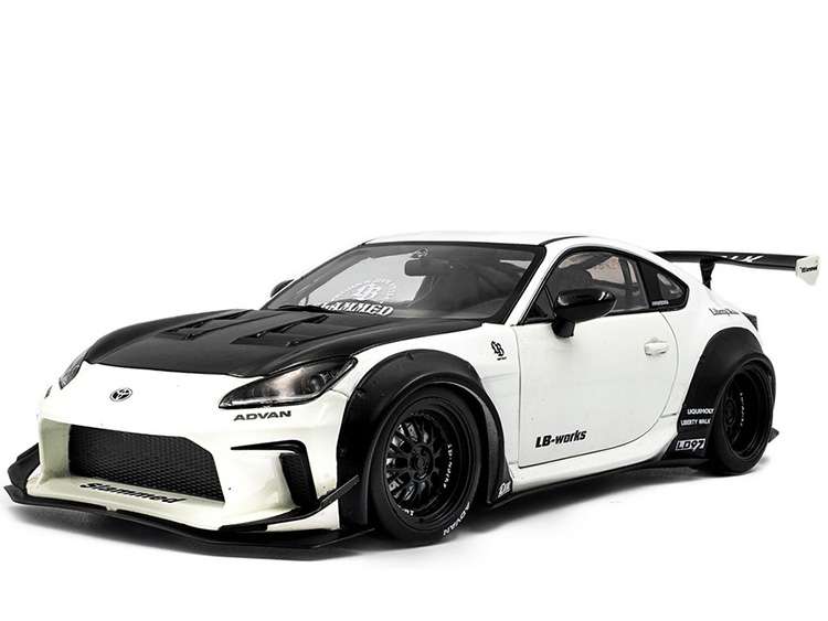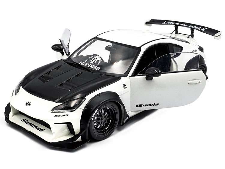 Solido S1813602 2024 Toyota GR86 LBWK Body kit 1:18 Pearl White / Carbon Hood